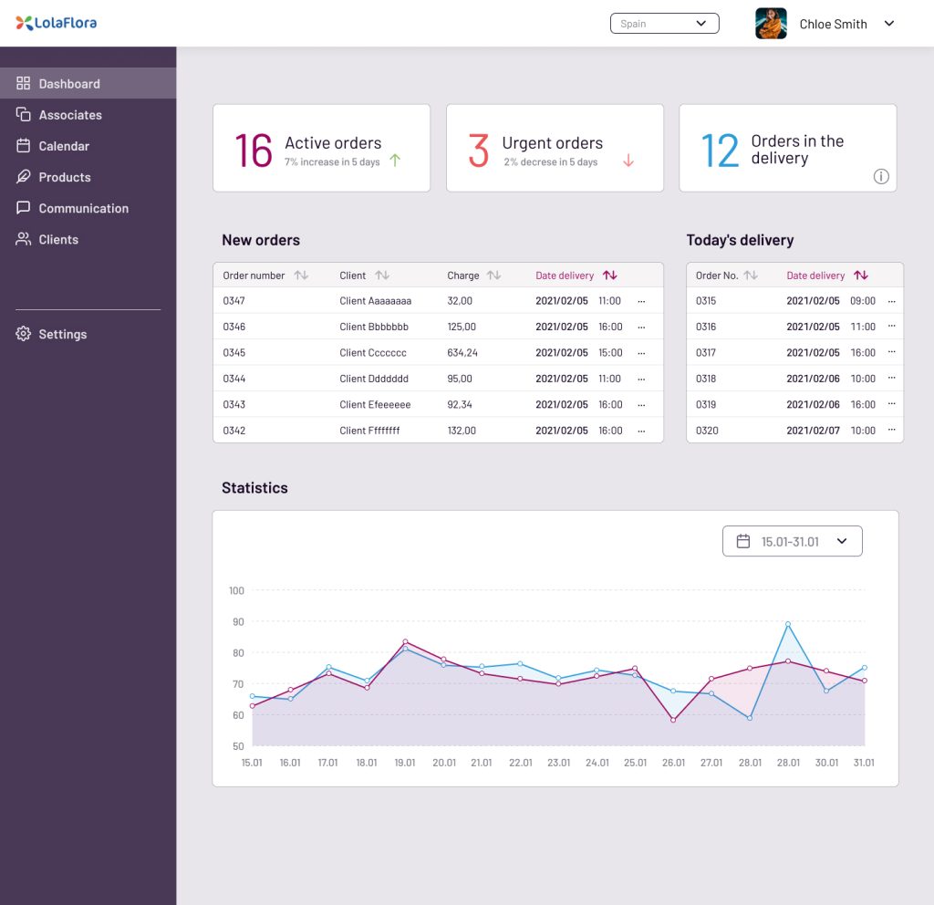 “Lola Flora” is a company that a deals with the delivery of flowers to order. It’s an international company and it has subsidiaries in Spain, Mexico, France, Italy and Turkey.