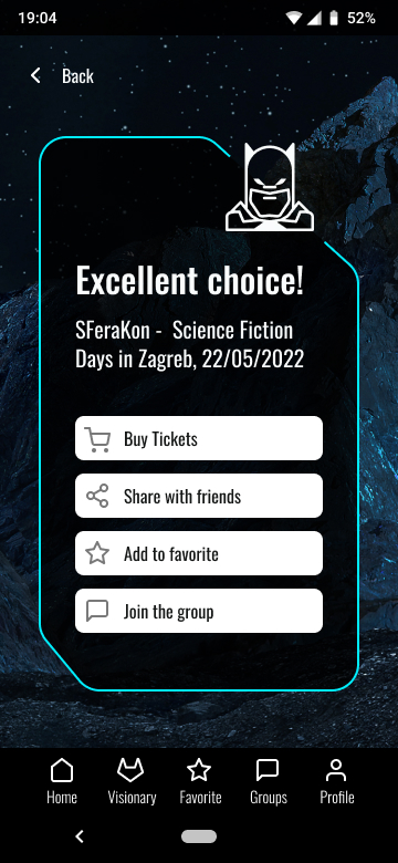The “prophesised” events you like can be saved as Favourites, saved into a Calendar, shared with Friends, and you can join groups of other people that like the same event as you