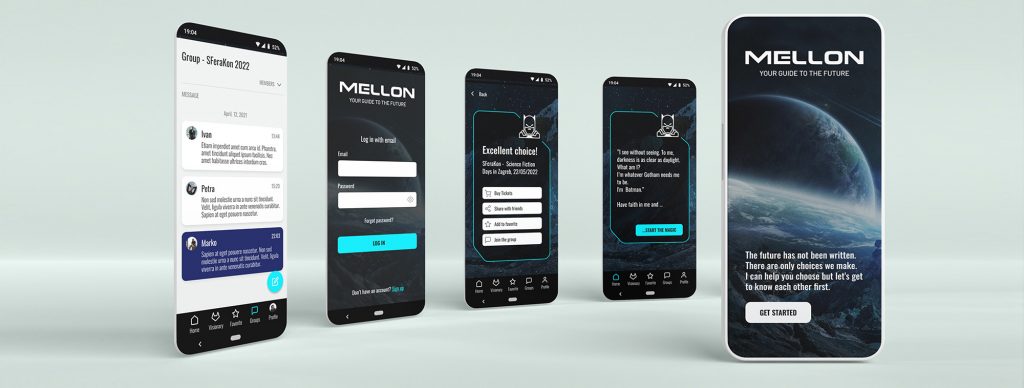 “Mellon” is a mobile application that, in a funny way, provides suggestions for social events in your vicinity and connects you to persons sharing your interests. No more boring weekends! Take a look into your future with this free app and start making plans for the weekend, or any other day of the week for that matter 😉